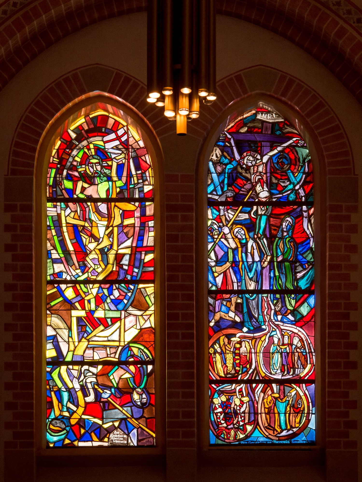 Die Glasfenster des Künstlers Martin Häusle (1903 - 1966) prägen die Kirche Herz Jesu. Hier und in weiteren 30 Kirchen und Kapellen gestaltete er Glasfenster mit religiösen Themen.