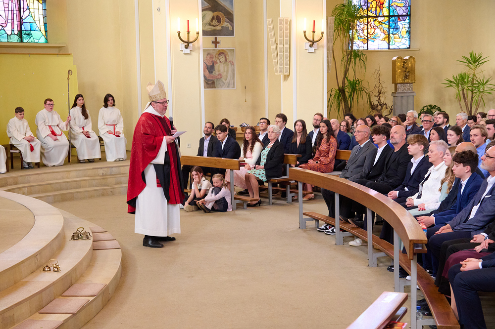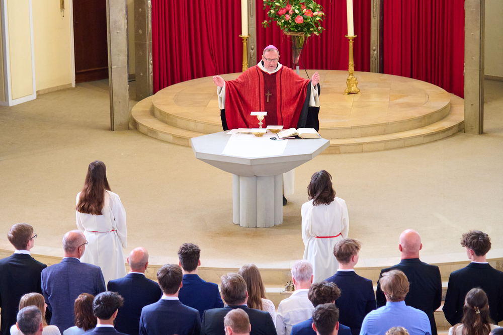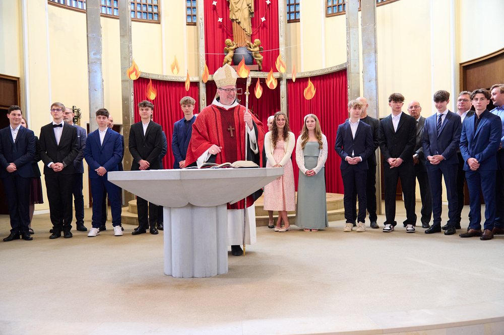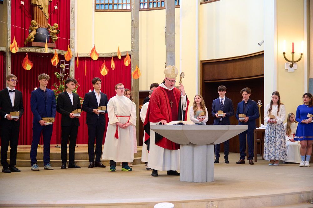 Die jungen Christinnen und Christen waren also bestens vorbereitet, das Sakrament der Stärkung im Glauben zu empfangen. Die Jugendlichen brachten sich selbst mit Gebeten und Texten im festlichen Gottesdienst ein. Eine Band aus Mariahilf gestaltete das Fest mit modernen geistlichen Gesängen und Musikstücken. Besonders bewegend war der Höhepunkt der Feier, die Firmspendung.