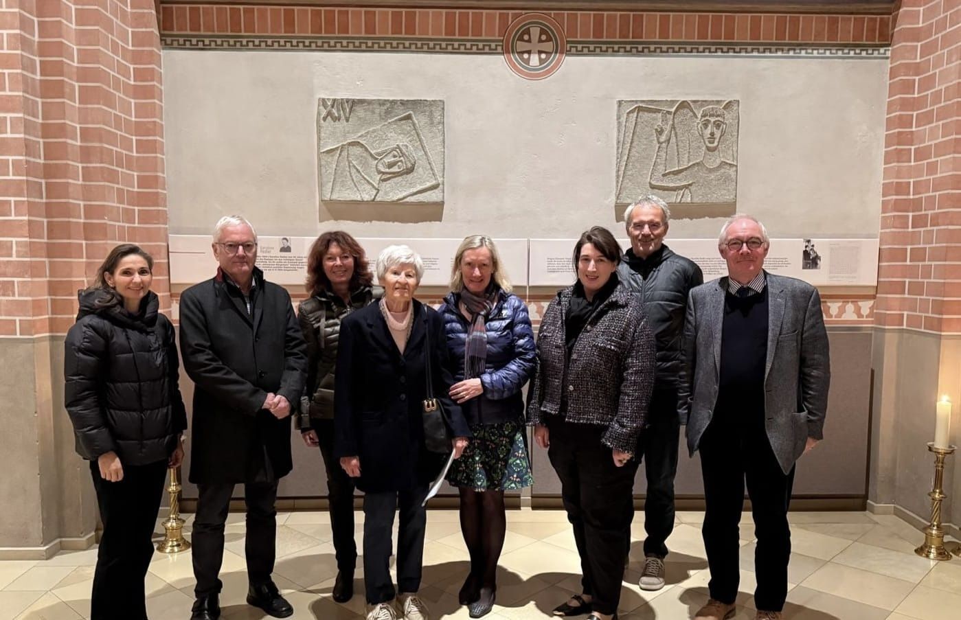 Beim anschließenden gemütlichen Umtrunk konnten sich die 150 Besucher/innen über das Erlebte austauschen. Die Skulptur des Südtiroler Künstlers Lois Anvidalferei, "Geköpft" erinnert an die Märtyrer ihres Gewissens, die für ihre Überzeugung den Kopf hingehalten haben.