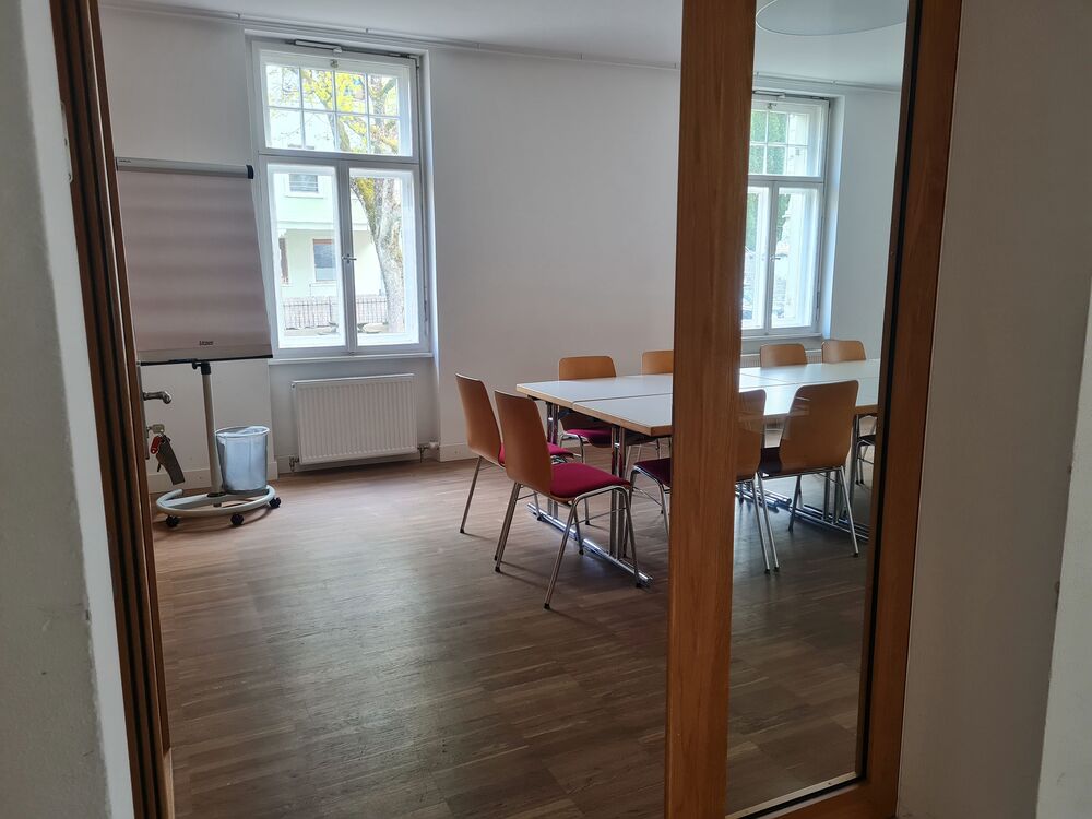 Ausstattung: Tische, Stühle, WLAN, Flipchart
