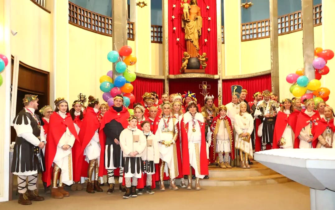 Neben vielen ehemaligen Prinzen und Prinzessinnen sah man auch bunte Faschingskostüme der Gefolge vergangener Jahre. Vikar Norman Buschauer lüftete in seiner Faschingspredigt ein paar gut gehütete Geheimnisse der römisch-katholischen Kirche – von Römer zu Römer – und hatte die Lacher auf seiner Seite.