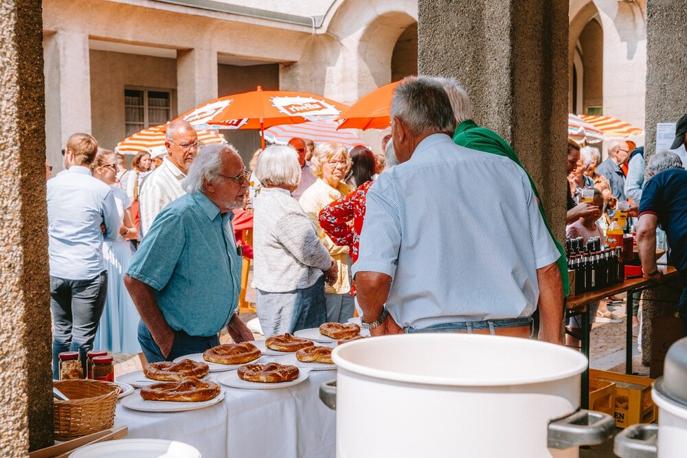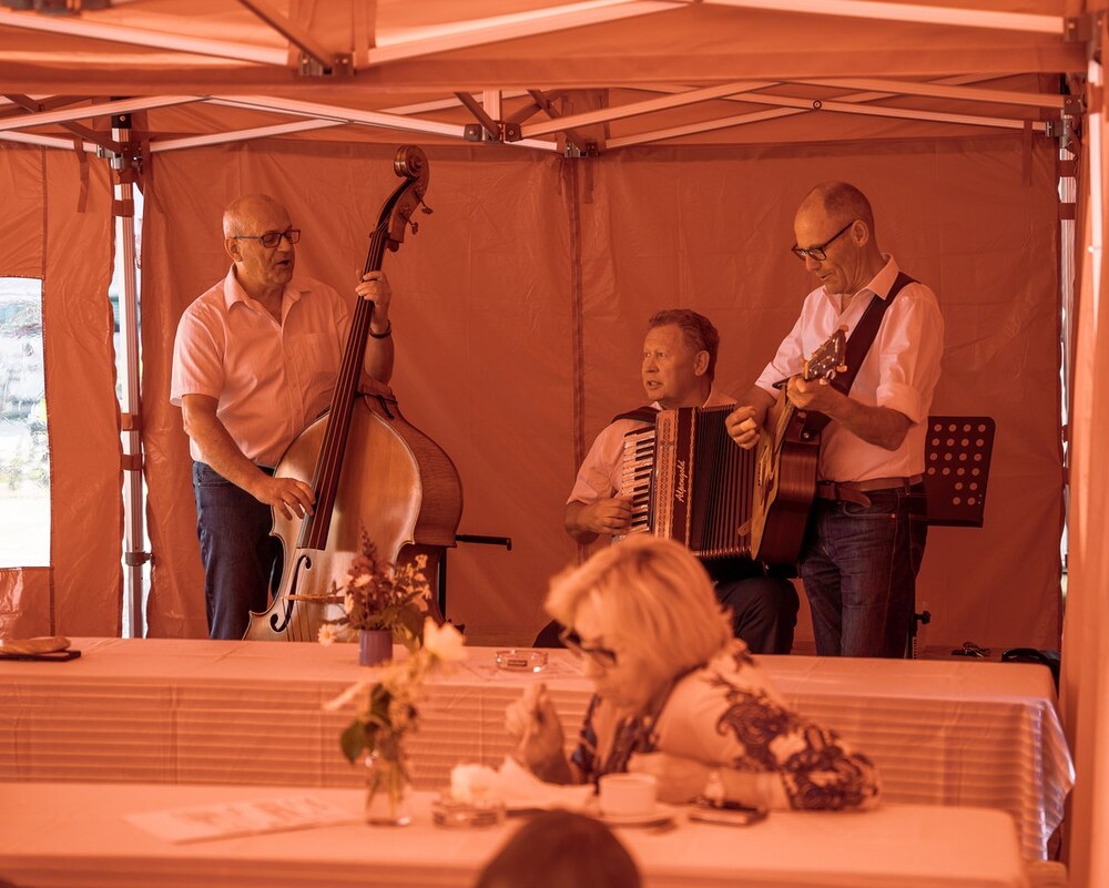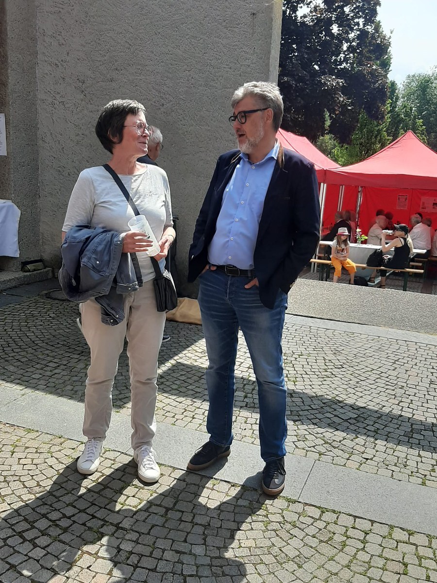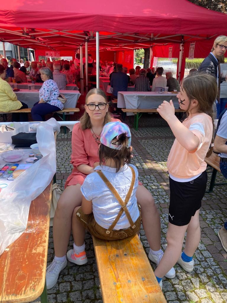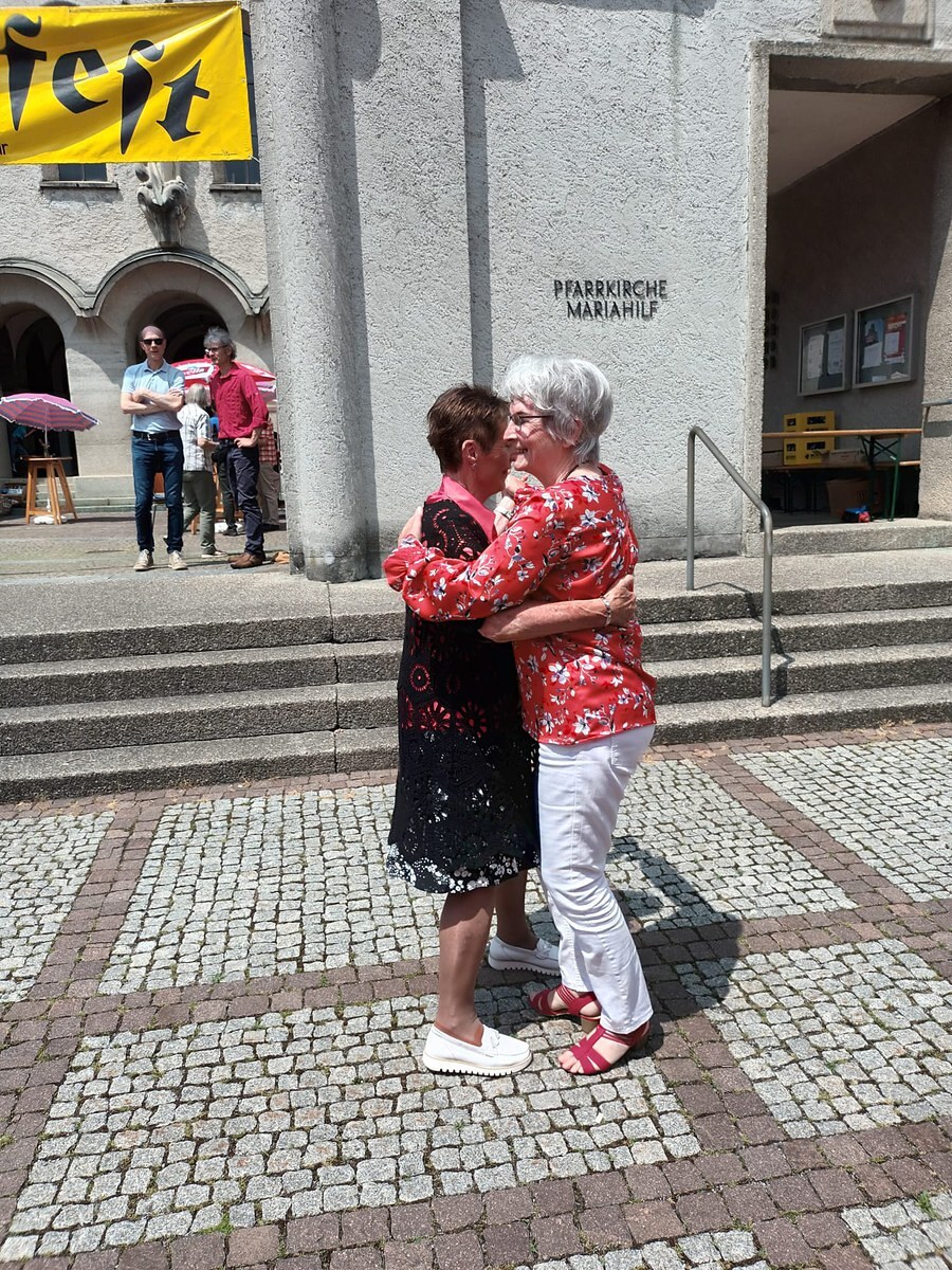 Danach sorgten die Männerrunde und das Pfarrcaféteam zusammen mit Katharina Hotz für das leibliche Wohl und das Jugendteam für ein unterhaltsames Kinderprogramm. Dankbar waren die Mitfeiernden für die Zelte vom Flohmarktteam, die als Schattenspender auf dem Parkplatz standen. Das Trio "Music pur" sorgte mit ihren Lieder für gute Stimmung bis in den Nachmittag hinein.