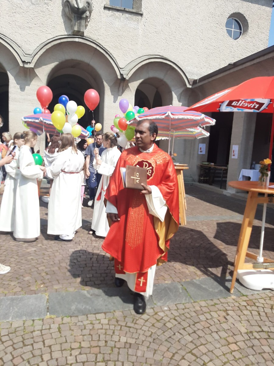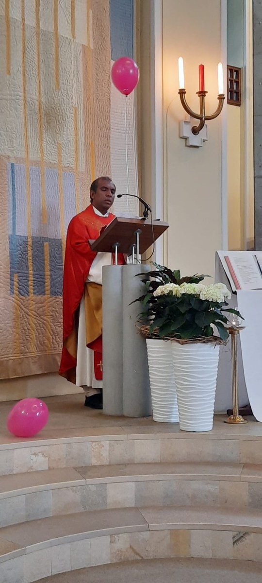 Der Start war die Pfingstsonntagsmesse um 10 Uhr, die von Mitgliedern des Pfarrgemeinderats inhaltlich und musikalisch mitgestaltet wurde. Es waren so viele Menschen in der Kirche, dass sogar die Hostien bei der Kommunion ausgingen. Beendet wurde die Messfeier auf dem Innenhof der Kirche. Alle Mitfeiernden banden Segenskarten mit Bitten an den Heiligen Geist an Luftballons und ließen sie nach dem Segen gemeinsam in den Himmel steigen.
