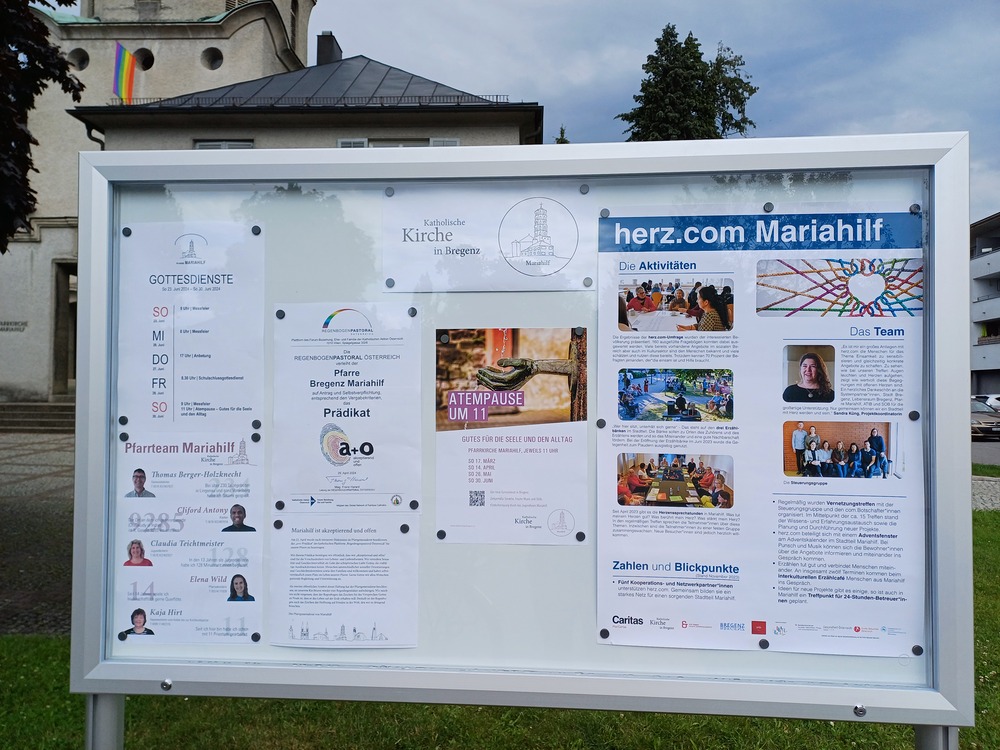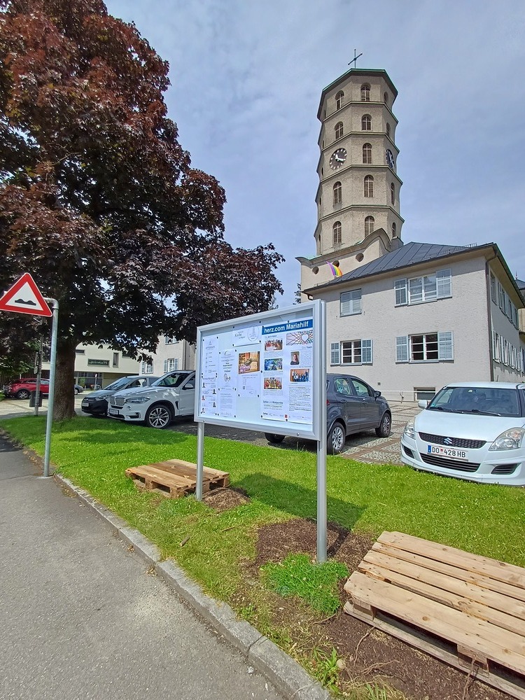Der Pfarrgemeinderat von Mariahilf hat beschlossen, einen Schaukasten an der Straße aufzustellen, damit die Informationen aus dem Pfarrleben auch für Menschen zugänglich sind, die an der Kirche vorbeispazieren.