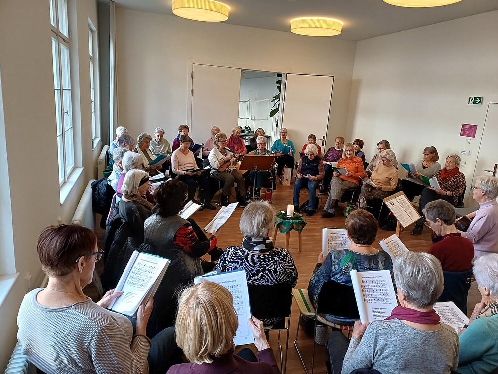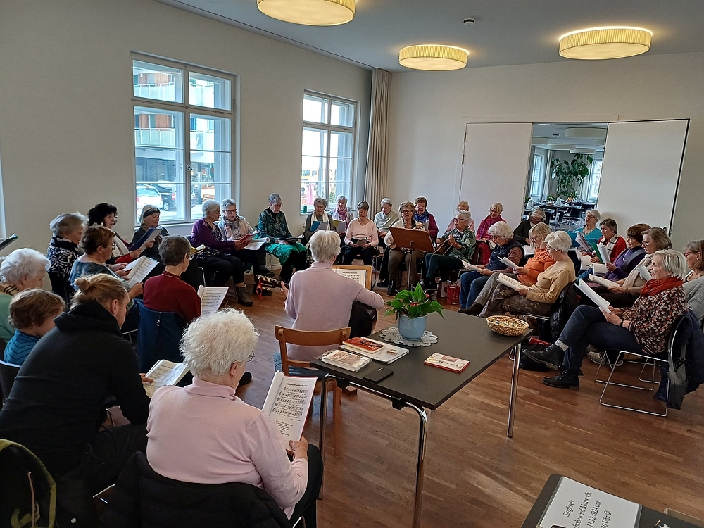 Seit vielen Jahren ladet Ingeborg Kopf einmal im Monat Senior:innen in den Pfarrsaal Mariahilf, die Freude am Singen haben. Am 4. 12. 24 war der Pfarrsaal brechend voll, weil diesmal Advents- und Weihnachtslieder gesungen wurden, bevor die Gruppe bei Kuchen und Kaffee den Nachmittag gemütlich ausklingen ließ.