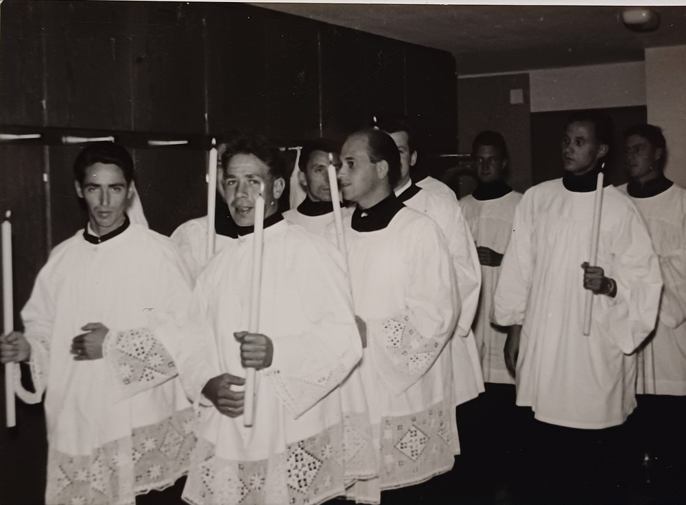Hans war von klein auf Ministrant in Mariahilf. Neben der Pfarre war Hans mit dem Alpenverein viel auf den Bergen und hat dort auch seine Frau Gretl kennen gelernt, die er 1960 heiratete.