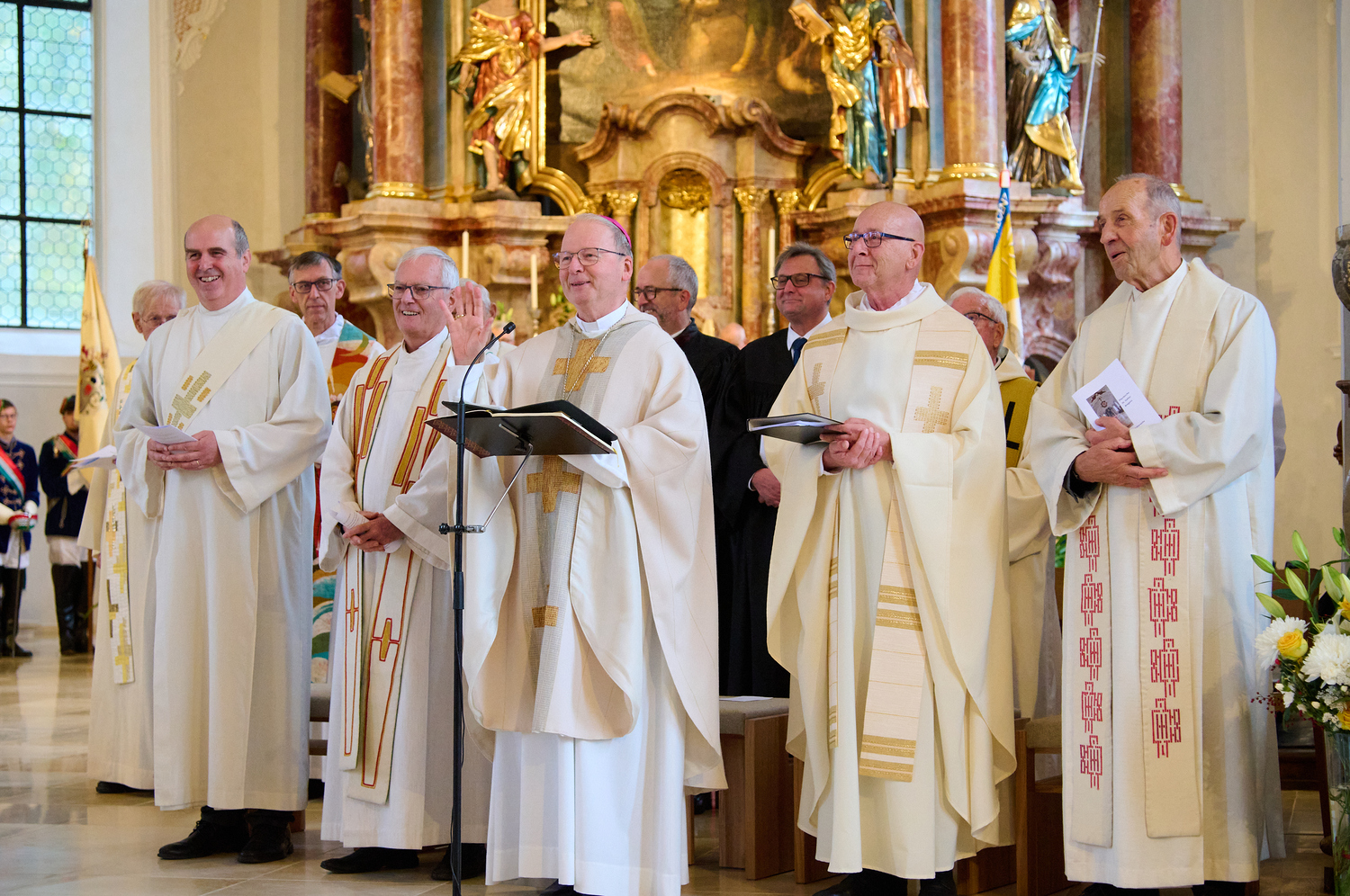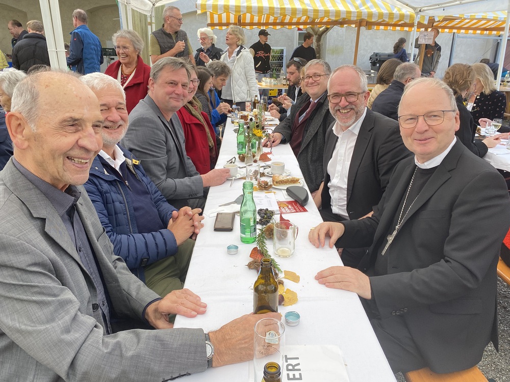 Es war eine eindrückliche Feier. Segnung des Wassers und Tauferinnerung am Beginn, die Segnung des neuen Ambos und besonders die Altarweihe (mit Beisetzung der Reliquien und Salbung des Altares mit Chrisam) haben Eindruck hinterlassen. Die Chöre unserer Pfarre (Kirchenchor, Grandi Amici, FrauaPower und Padres Cantantes) trugen zur musikalischen Gestaltung bei. Schön war, dass in ökumenischer Verbundenheit auch Pfr. Ralf Stoffers (Evangelische Kirche) und Pfr. Frank Moritz (Evang. method. Kirche) mit uns feierten und unserer Pfarrgemeinde auch noch ein Geschenk überreichten. Anschließend feierten hunderte Menschen im Innenhof des Kapuzinerklosters. Es war ein Fest des ganzen Seelsorgeraums Bregenz!