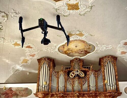 Mit Alexander Kaiser hat ein Experte für Drohnenkameras wunderbare Aufnahmen gemacht. Die Flugdrohne ermöglicht große Bewegungen, eine gesteuerte Kameraschiene hilft bei kleinsten Bewegungen über die Details der Kunstwerke. Ergänzt werden die Bilder durch das Orgelspiel von Elgar Odo Polzer. Das Ergebnis ist ein fließendes Erlebnis durch Zeit, Kunst und Theologie. | Thomas Ilg