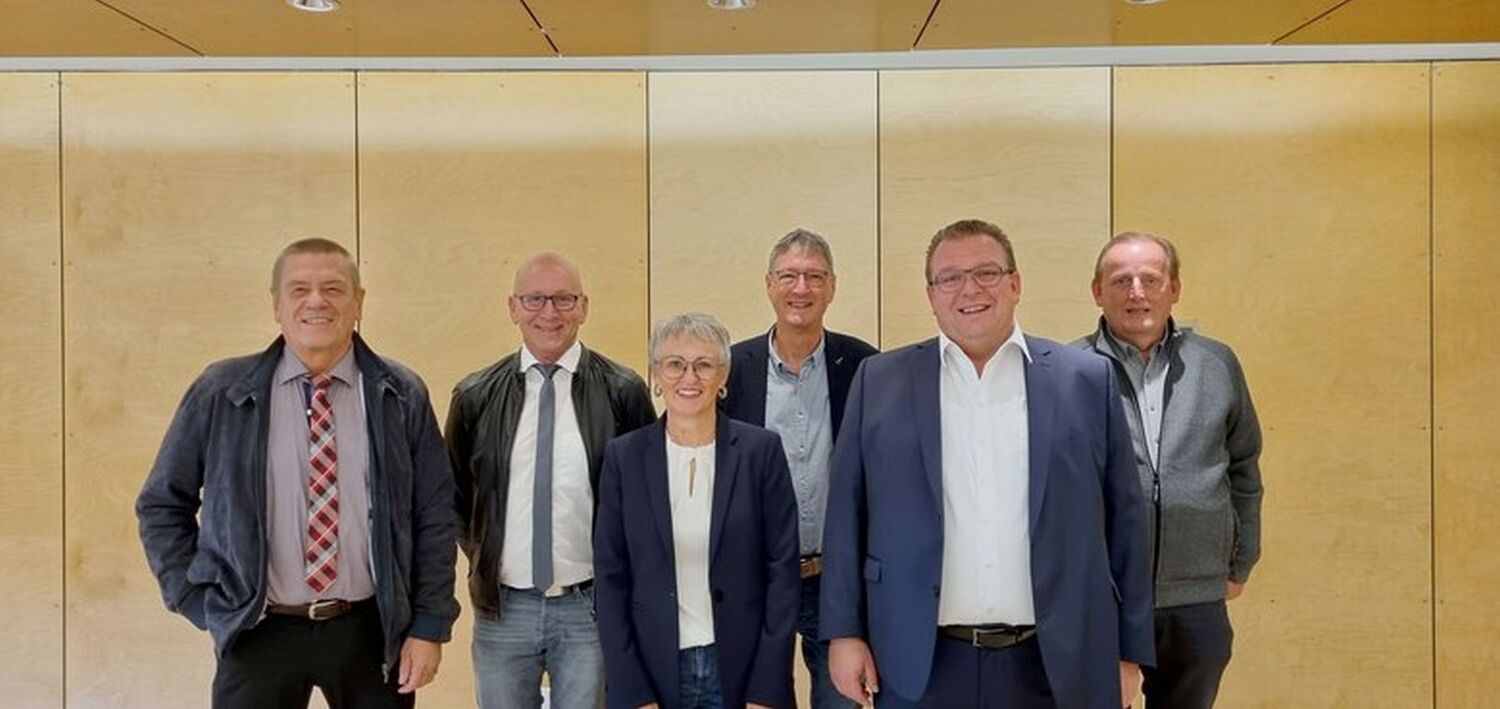 Im Bild v. l.: Wolfgang Harrich, Pfarrer Manfred Fink, Silvia Pfefferkorn, Wolfgang Mungenast, Harald Bernhart, Josef Nairz. Nicht im Bild: Gerhard Sturm
