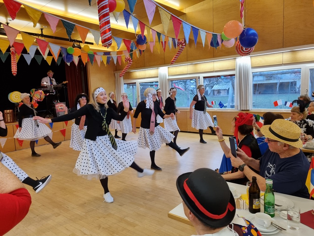 Insgesamt waren 70 Mäschgerle anwesend und wurden von der Tanzgruppe und von Gerhard Grätzner musikalisch durch den Nachmittag begleitet.