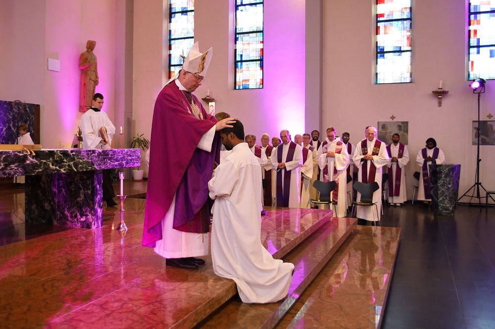 In der Pfarrkirche St. Gebhard wurde der aus Kerala stammende Inder von Bischof Benno Elbs zum Diakon geweiht. „Mit seinem ‚Ja‘ stellt er sich in den Dienst der Menschen und aktuell besonders hier in der Pfarre St. Gebhard, wo er am 1. September sein Praktikum begonnen hat.“, kommentierte Bischof Benno das besondere Ereignis.