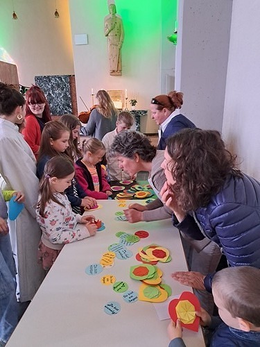 Einigen Müttern, die vor zwei Jahren die Erstkommunionvorbereitung unterstützt haben, haben sich im Anschluss zum Kinderliturgieteam zusammengefunden, um drei bis viermal im Jahr eine Familienmessfeier zu gestalten.