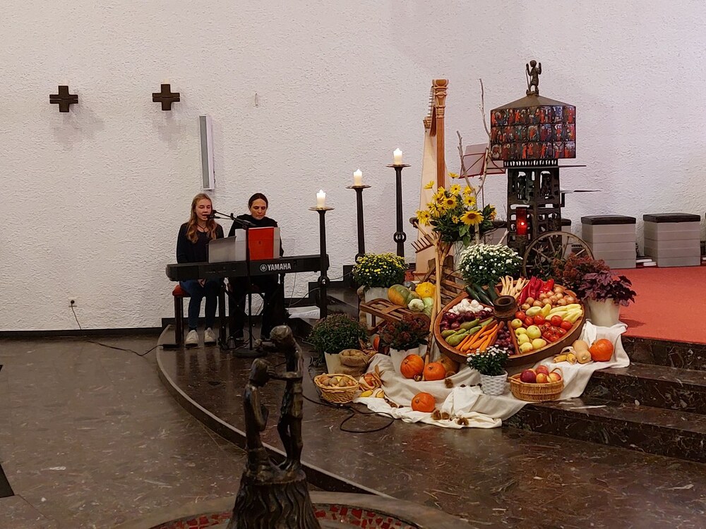 Musikalisch wurde der Gottesdienst von Lara und Nicole Schiemer mit Gesang, Harfe und Keyboard sehr stimmungsvoll gestaltet.