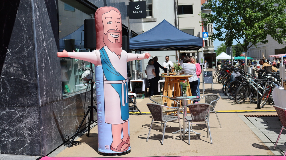 Im ersten Stock bot ein Glücksrad überraschende Informationen über die kirchlichen Stellen, die hier arbeiten: Schulamt, Ehe- und Familienzentrum, DiveIn und Caritas.