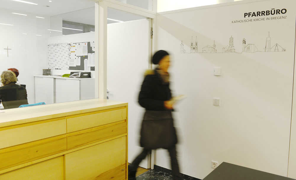 Im Erdgeschoß befindet sich das gemeinsame Pfarrbüro der Bregenzer Pfarren.