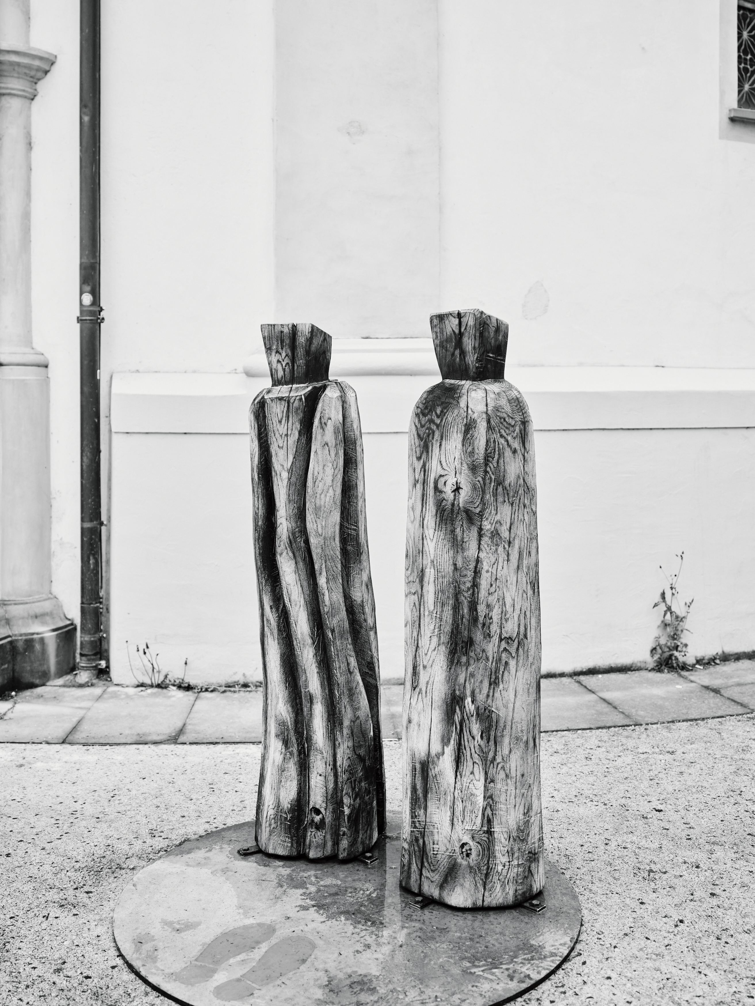 Die beiden Baumstämme wirken wie Menschen. Beide sind geflämmt, wir sehen ihre Maserung, ihren Körperbau.