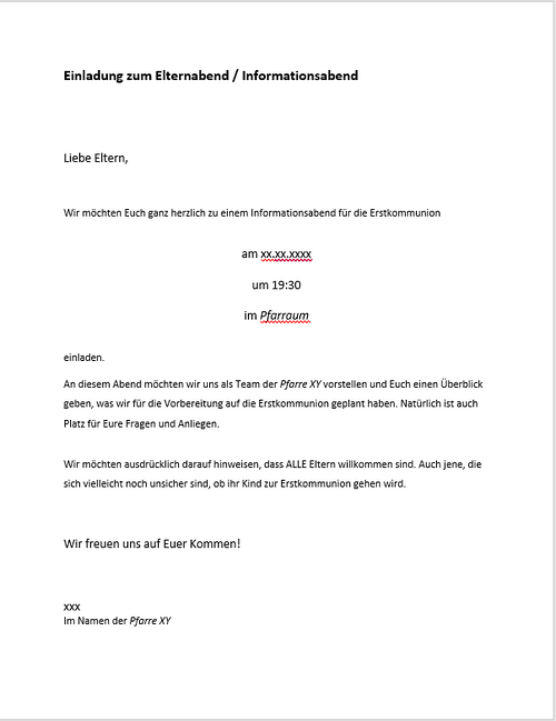 Ideen für die Elterarbeit in der Erstkommunionvorbereitung